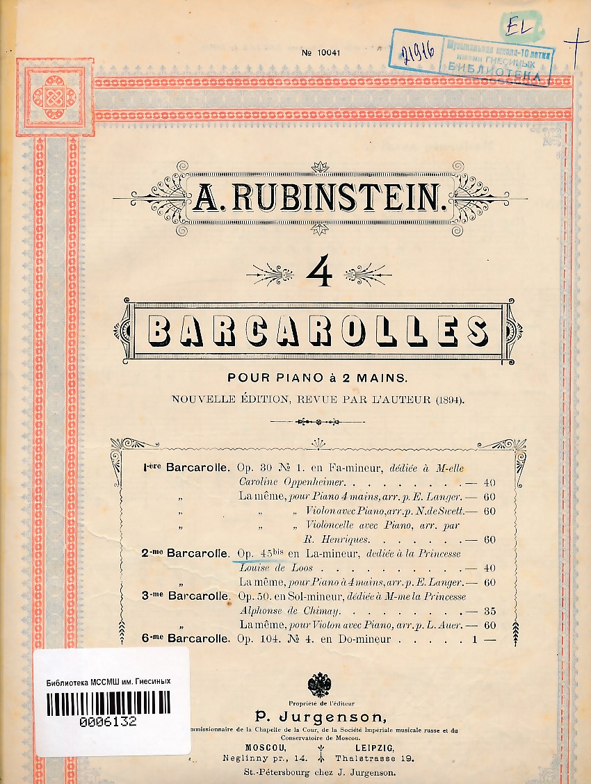 Колыбельная Романс Баркарола: для виолончели и фортепиано