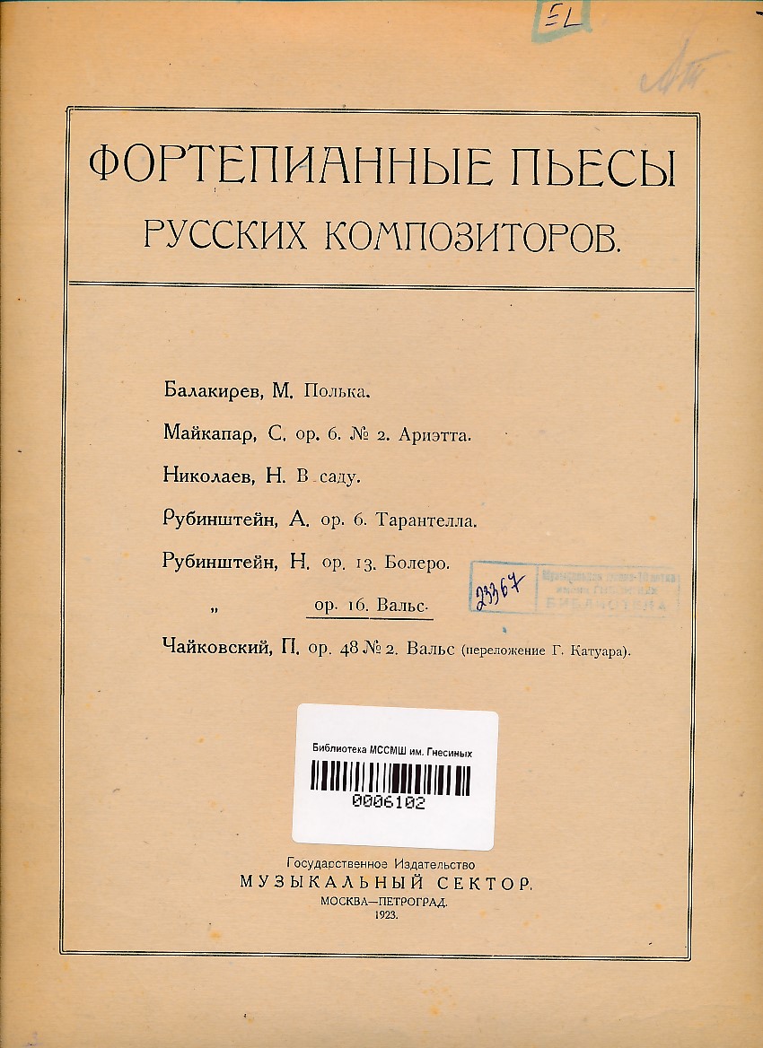 Музыкальный сектор государственного изд-ва, 1923 г.