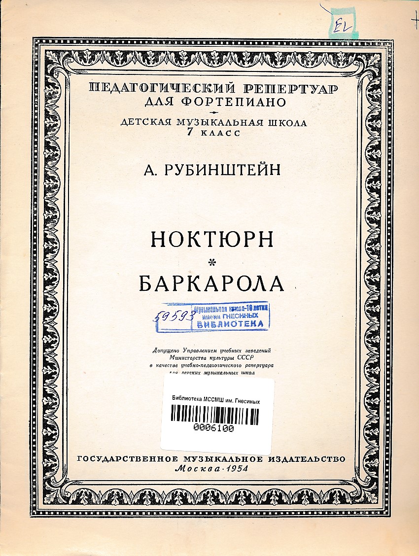 Ноктюрн Баркарола: для фортепиано