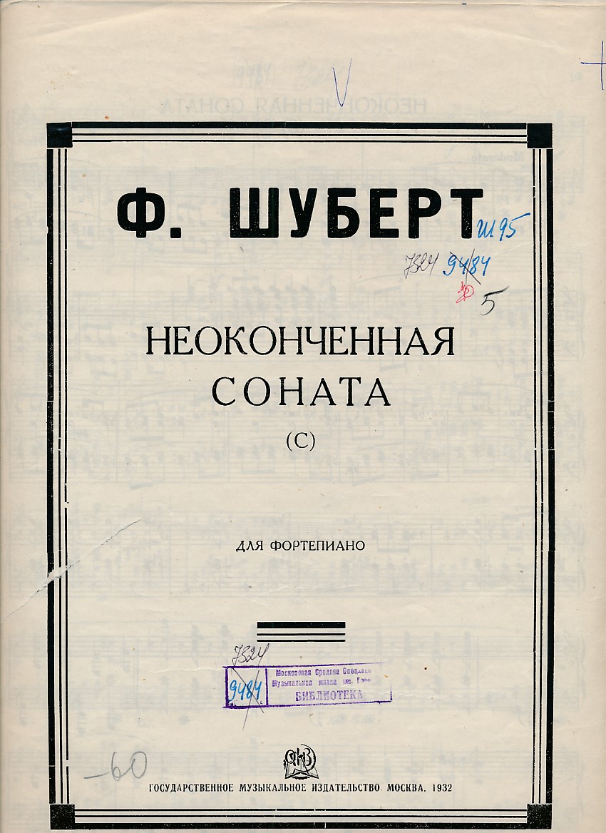 Неоконченная соната (C-dur): для фортепиано