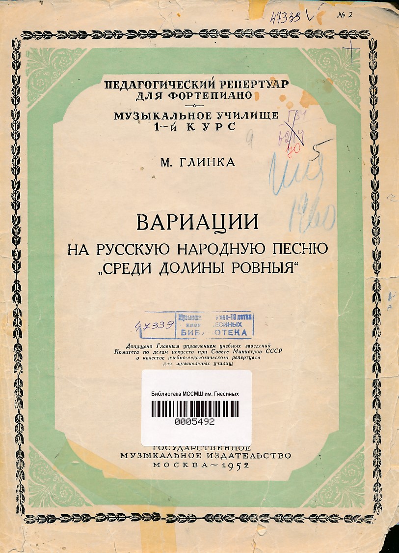 Вариации на русскую народную песню "Среди долины ровныя": для фортепиано