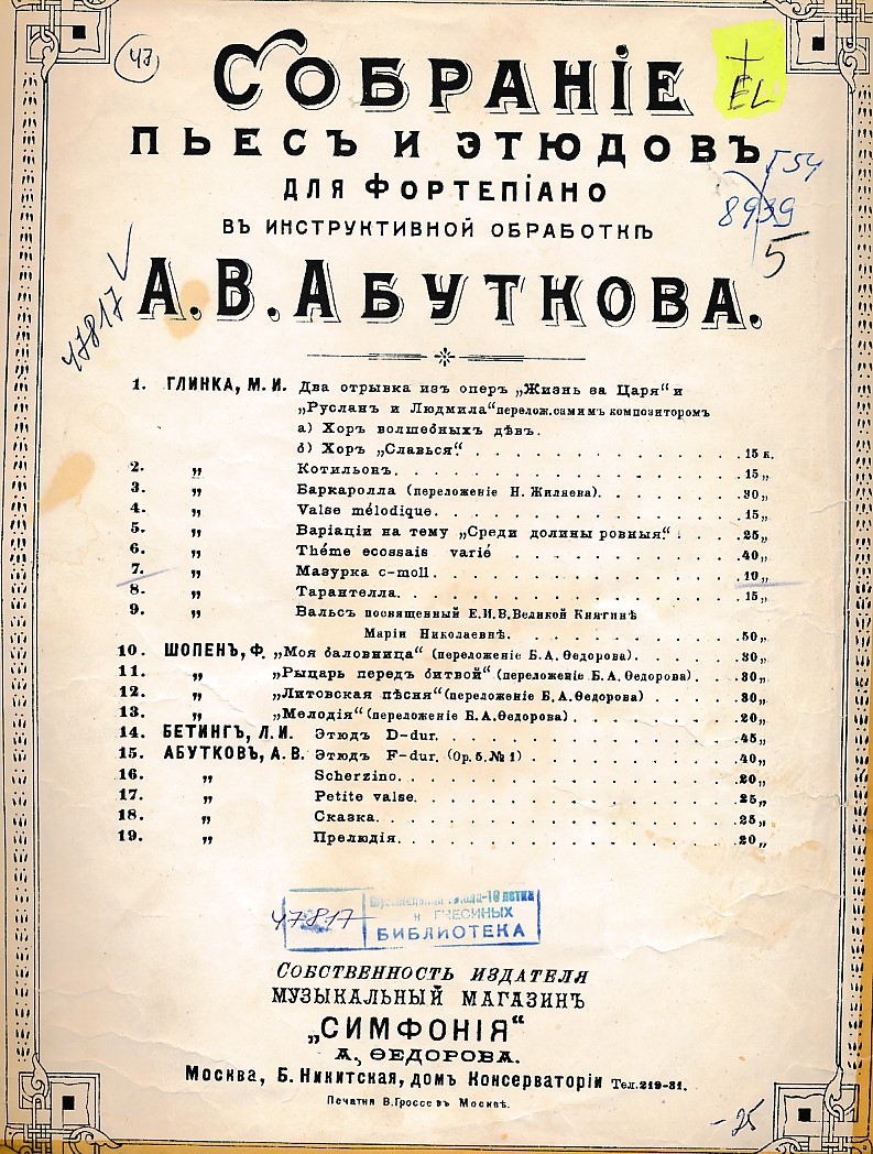 Сборник пьес русских композиторов: для скрипки и фортепиано, 5-6 класс