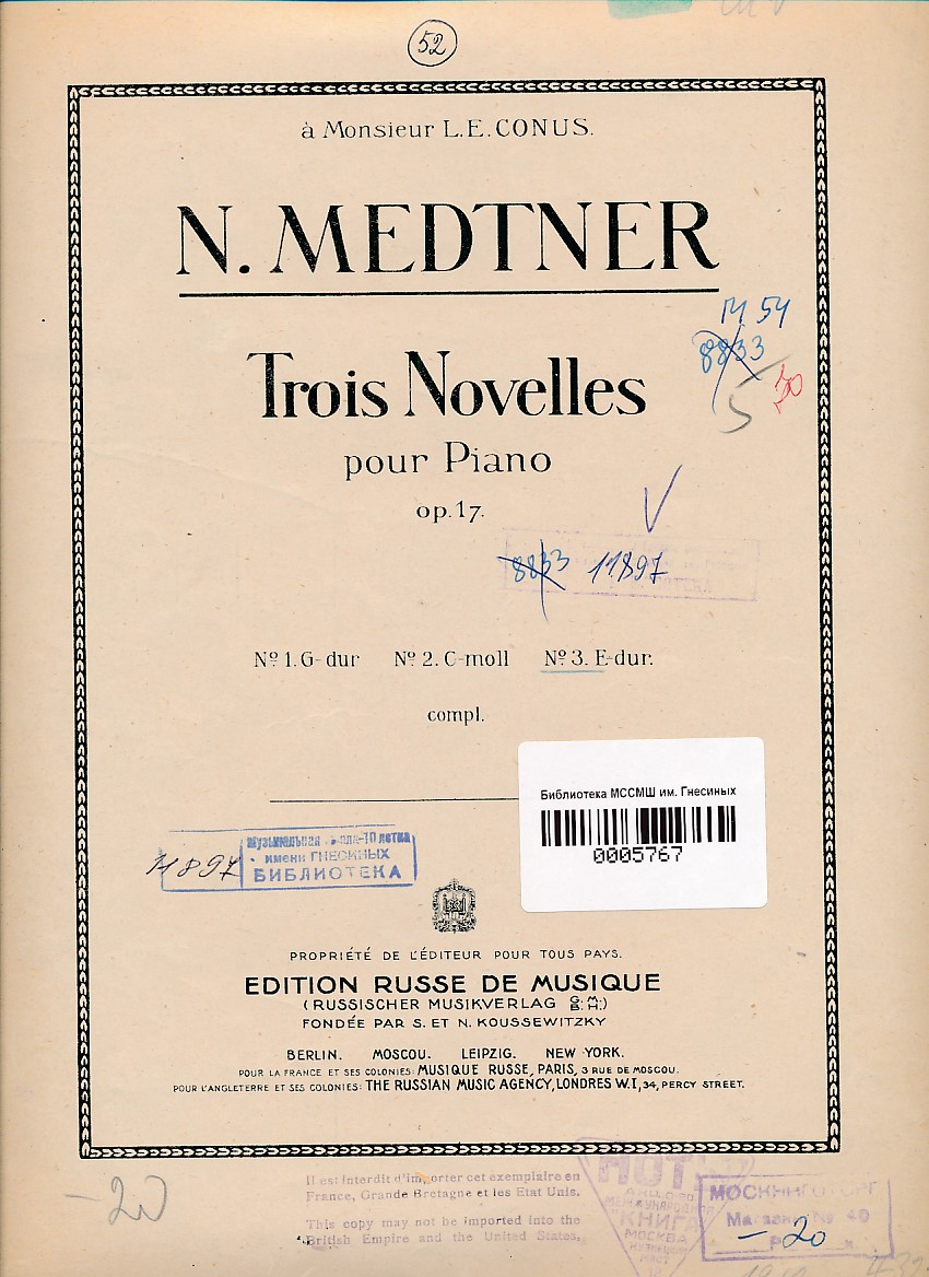 Три новеллы. Ор. 17, № 3: для фортепиано
