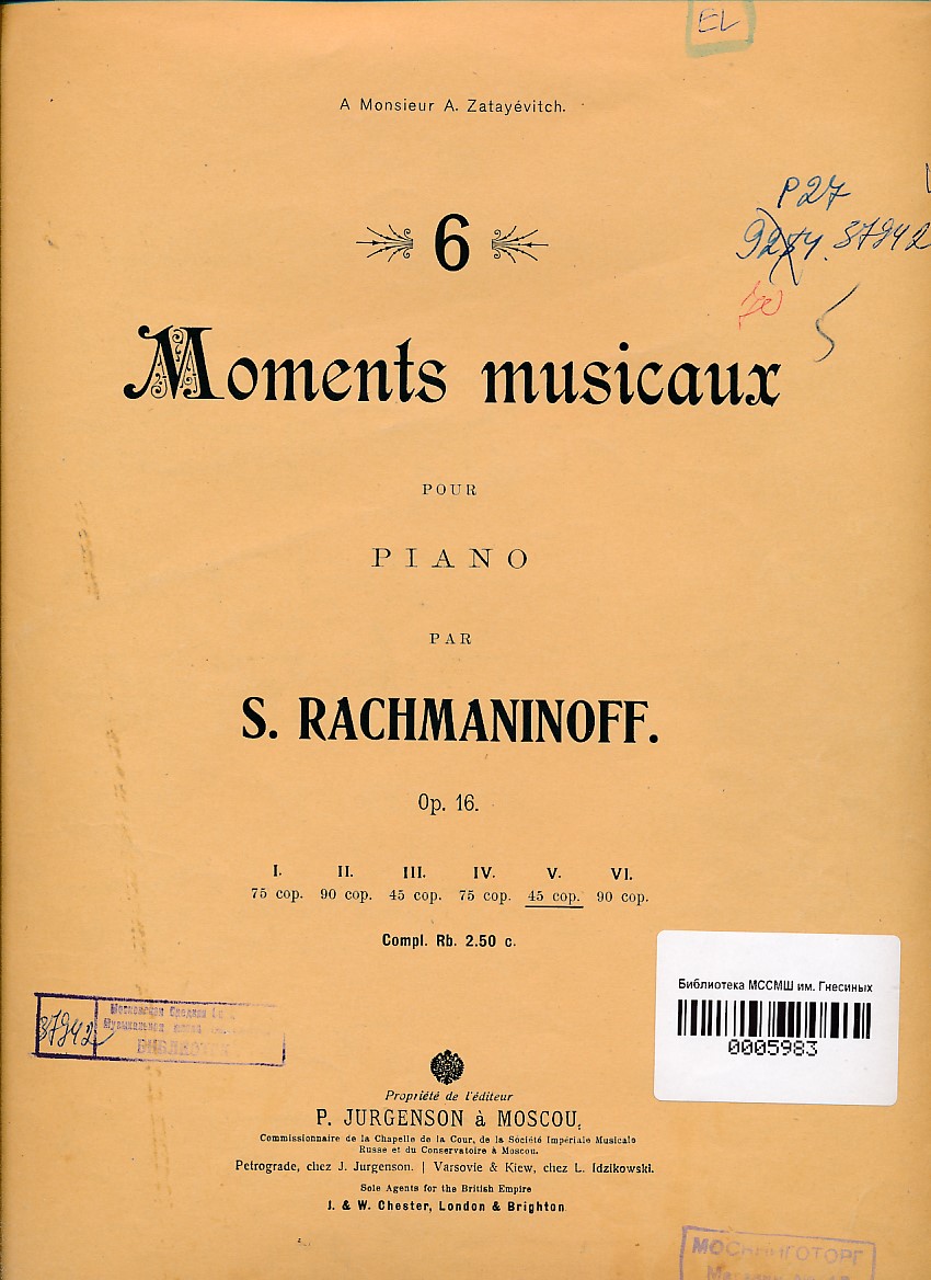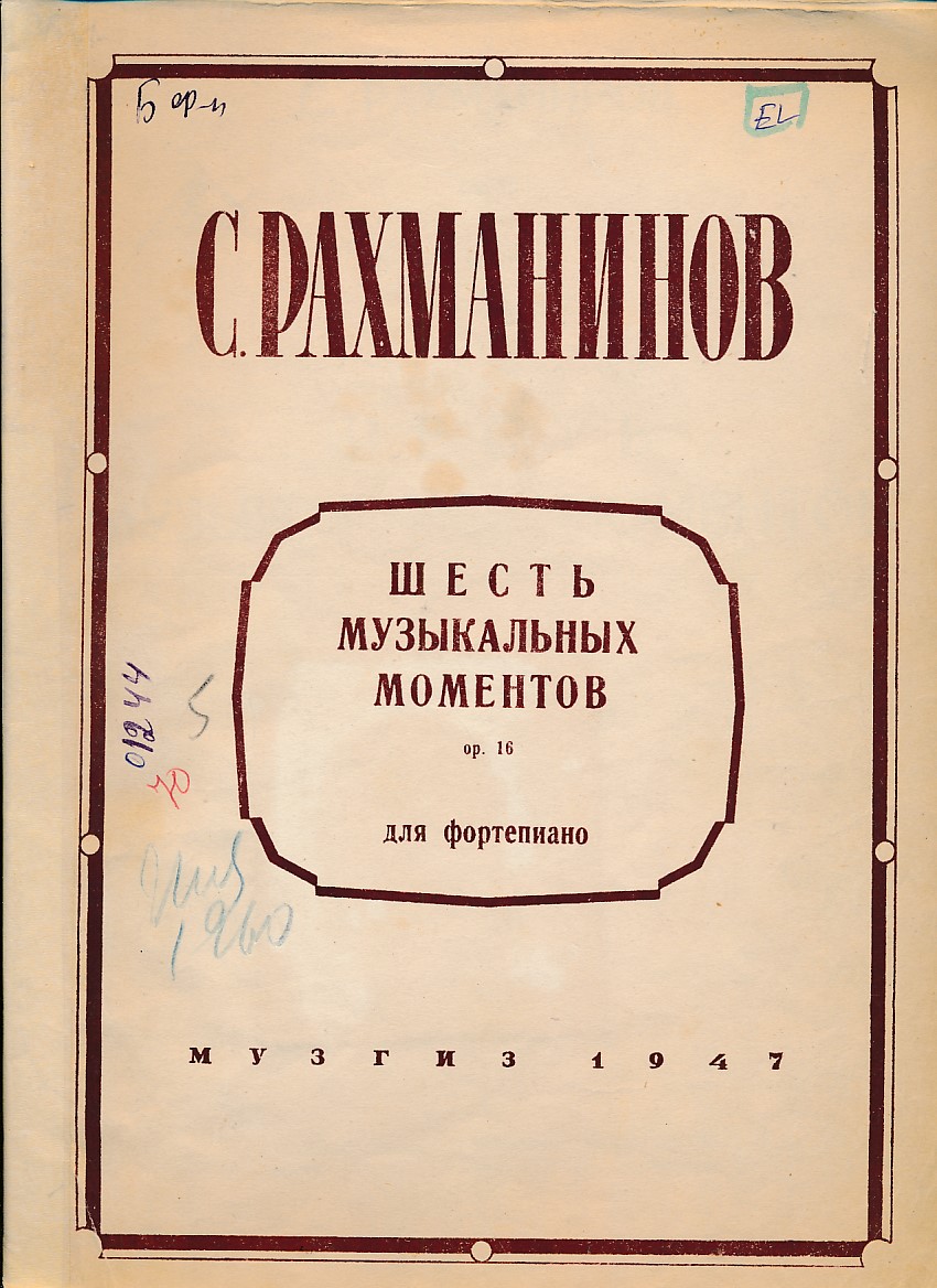 Шесть музыкальных моментов: Соч. 16, для фортепиано