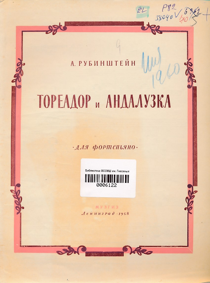 Тореадор и Андалузка, Соч. 103, № 7: для фортепиано